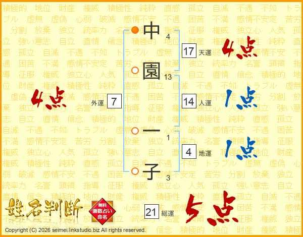 中園一子さんの天運は17画の4点!