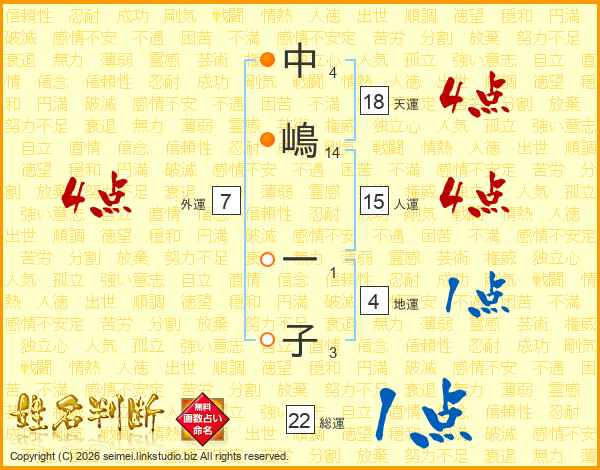 中嶋一子さんの総運は22画の1点!