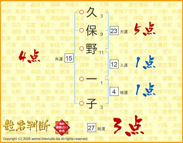 久保野一子さんの総運は27画の3点!