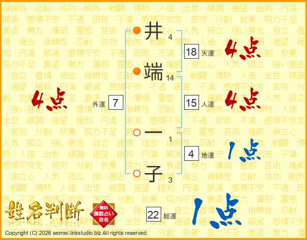 井(4画)端(14画) 一(1画)子(3画)