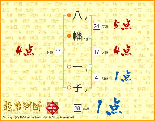 八幡一子さんの人運は17画の4点!