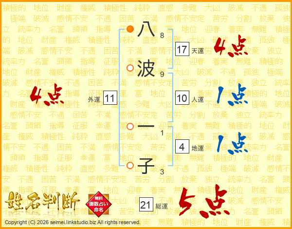 八波一子さんの総運は21画の5点!
