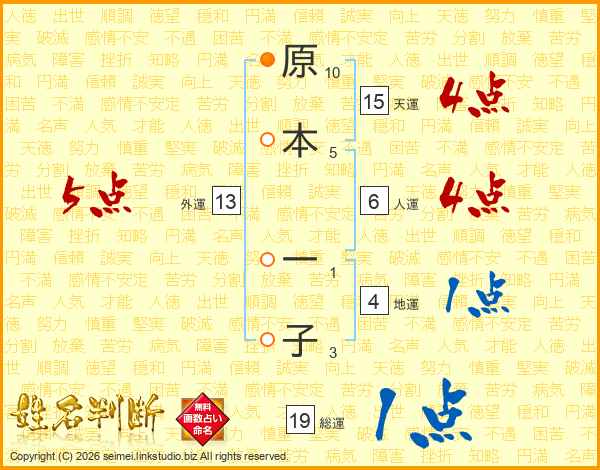 原本一子さんの天運は15画の4点!