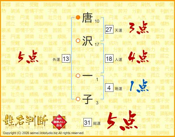 唐沢一子さんの総運は31画の5点!