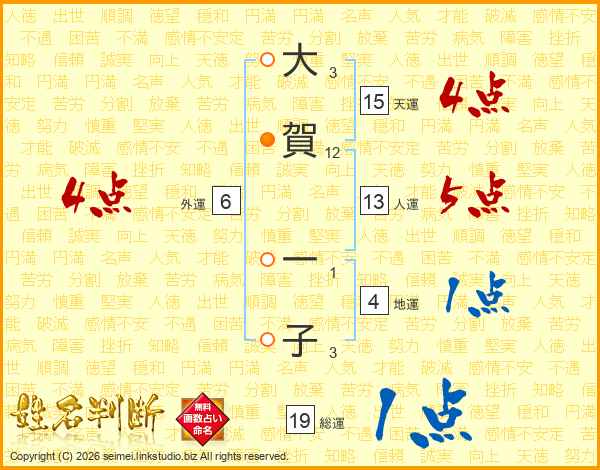 大(3画)賀(12画) 一(1画)子(3画)
