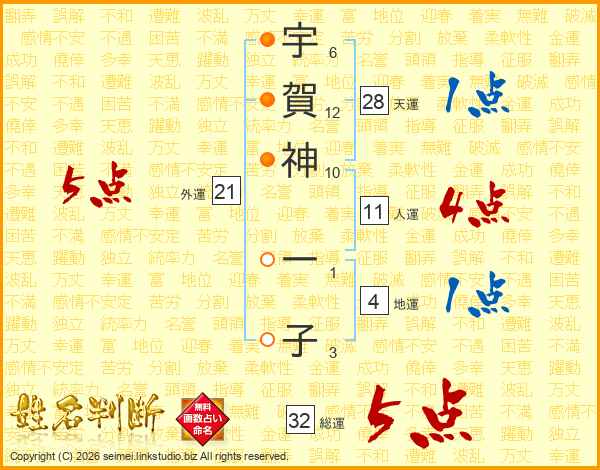 宇賀神一子さんの総運は32画の5点!
