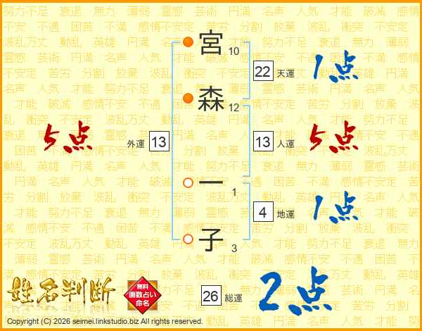 宮森一子さんの総運は26画の2点!