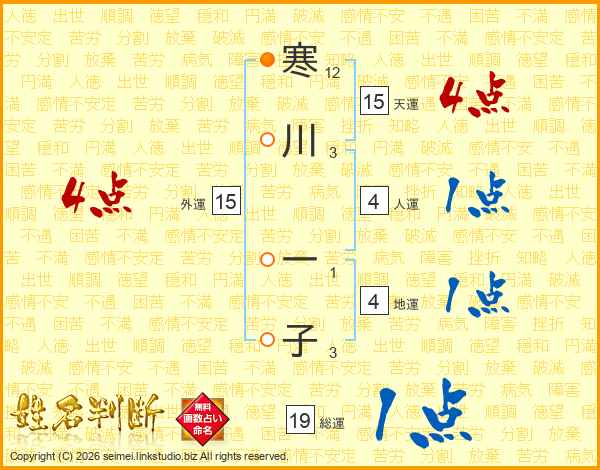 寒川一子さんの外運は15画の4点!