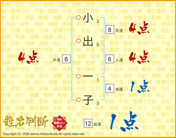 小出一子さんの総運は12画の1点!