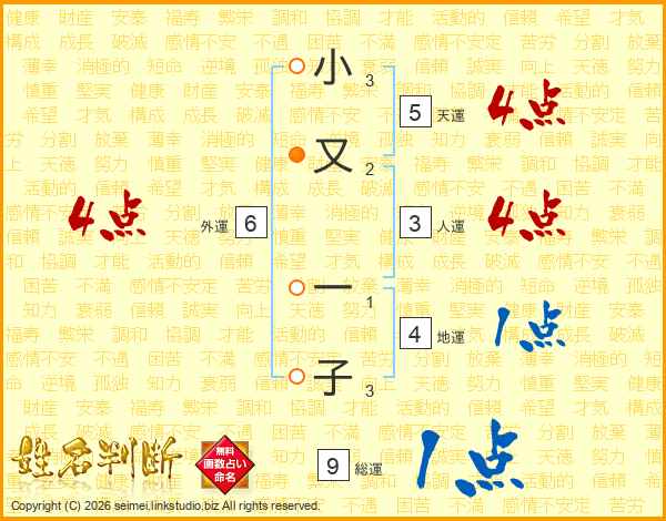 小又一子さんの総運は9画の1点!