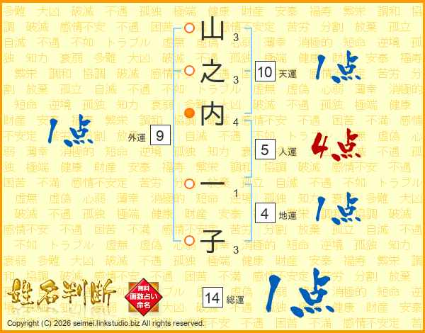 山之内一子さんの総運は14画の1点!