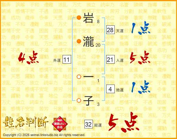 岩瀧一子さんの総運は32画の5点!