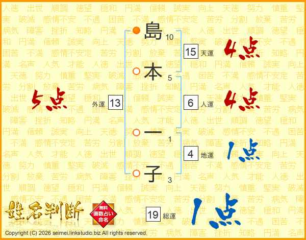 島本一子さんの外運は13画の5点!