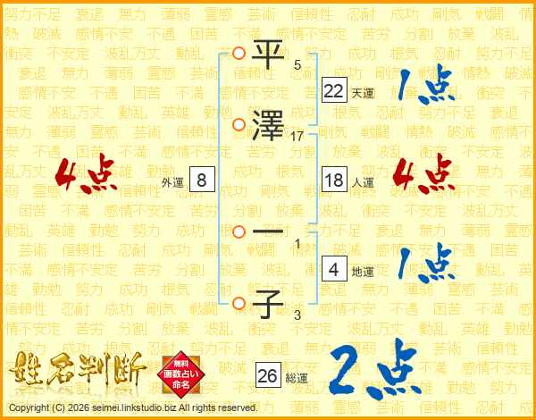 平澤一子さんの天運は22画の1点!