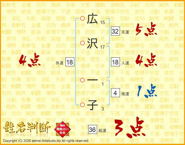 広沢一子さんの外運は18画の4点!