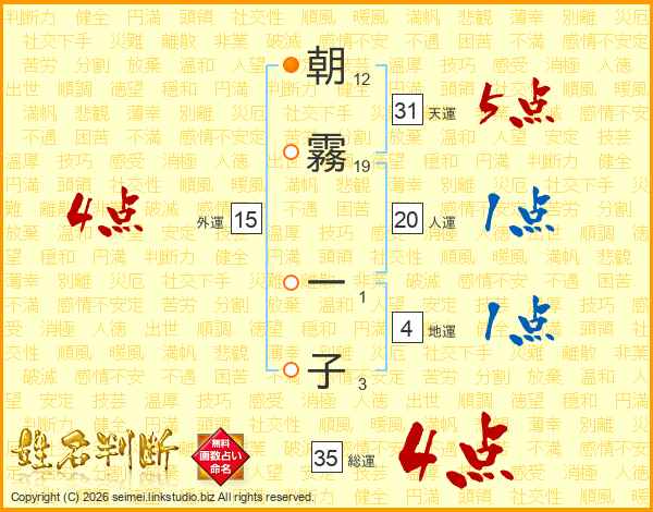 朝霧一子さんの総運は35画の4点!
