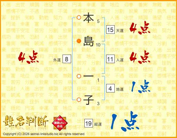 本島一子さんの人運は11画の4点!