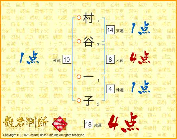 村谷一子さんの総運は18画の4点!