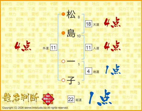 松島一子さんの人運は11画の4点!