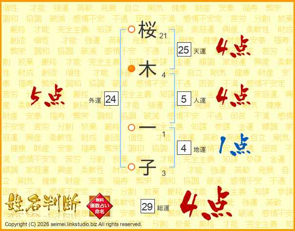 桜(21画)木(4画) 一(1画)子(3画)
