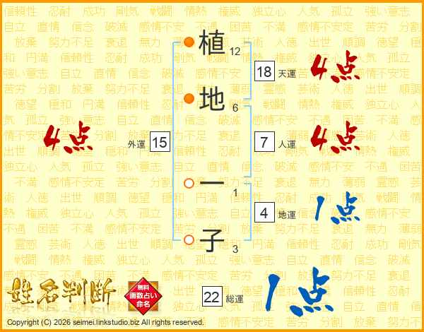 植地一子さんの天運は18画の4点!