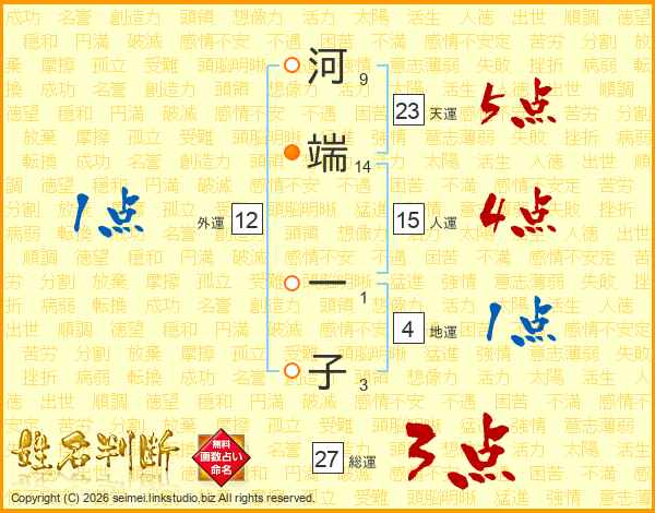 河端一子さんの総運は27画の3点!