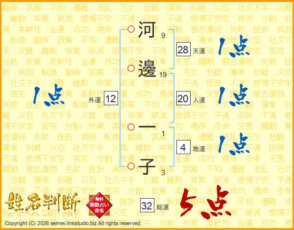 河邊一子さんの総運は32画の5点!