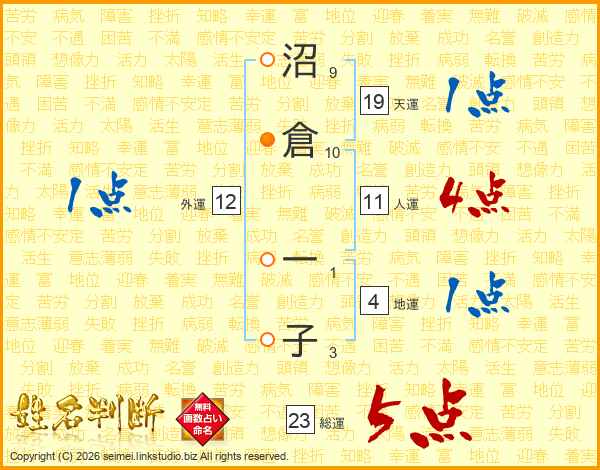 沼倉一子さんの天運は19画の1点!