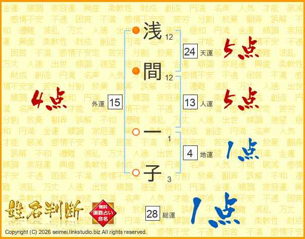 浅間一子さんの総運は28画の1点!