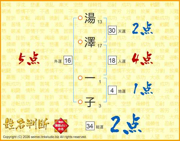 湯澤一子さんの総運は34画の2点!