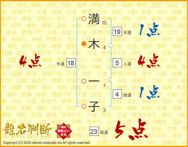 満木一子さんの総運は23画の5点!