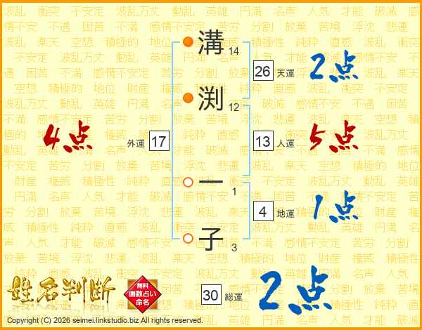 溝渕一子さんの総運は30画の2点!