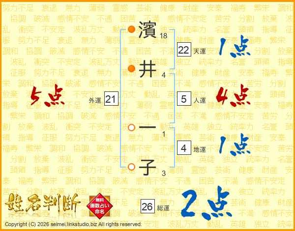 濱井一子さんの総運は26画の2点!