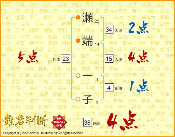 瀬端一子さんの総運は38画の4点!