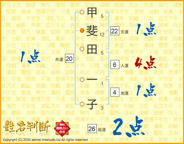 甲斐田一子さんの総運は26画の2点!