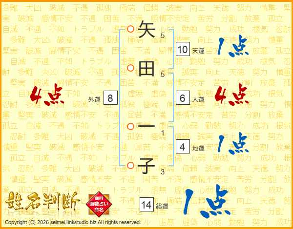 矢田一子さんの総運は14画の1点!
