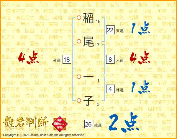 稲尾一子さんの総運は26画の2点!