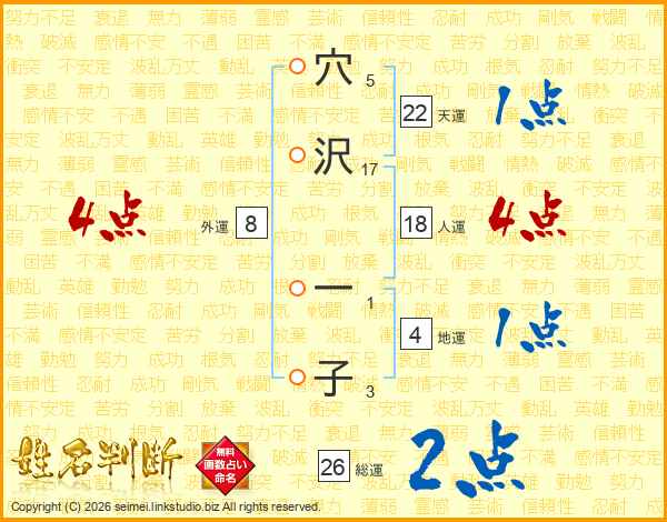 穴沢一子さんの総運は26画の2点!