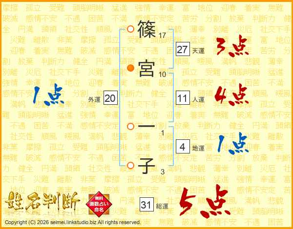 篠宮一子さんの総運は31画の5点!