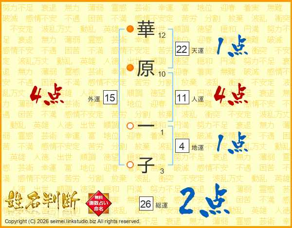 華原一子さんの総運は26画の2点!