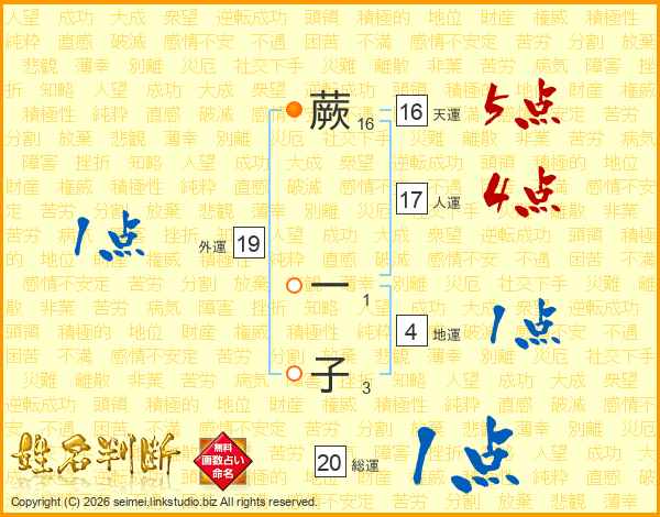 蕨一子さんの総運は20画の1点!