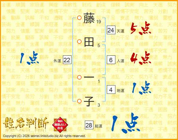 藤田一子さんの総運は28画の1点!