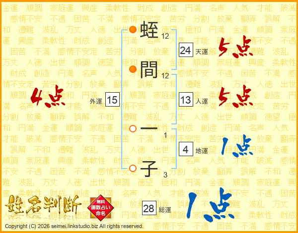 蛭間一子さんの人運は13画の5点!