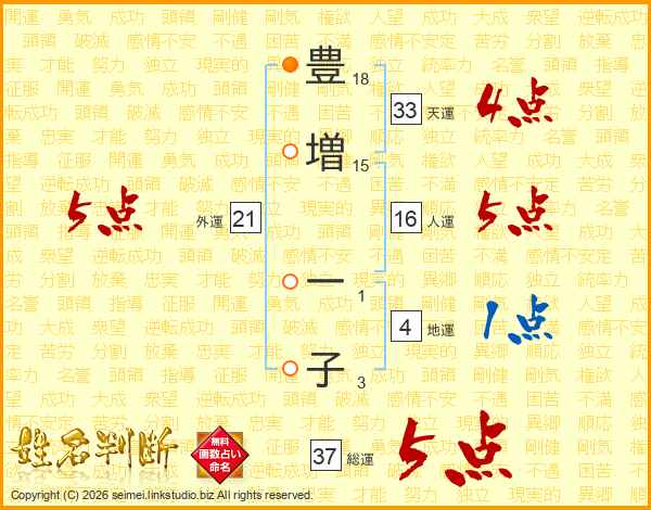 豊増一子さんの総運は37画の5点!