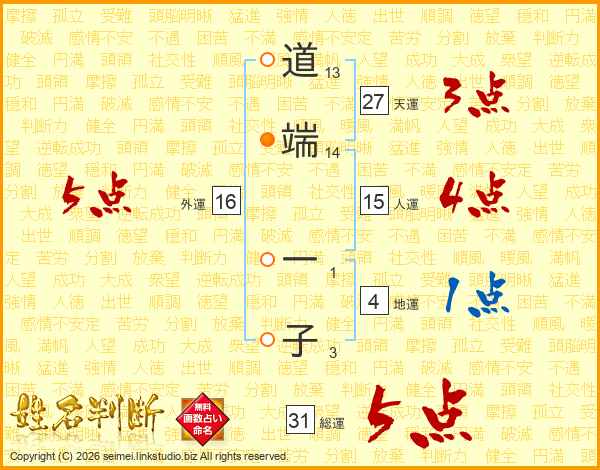 道端一子さんの総運は31画の5点!