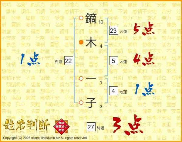 鏑木一子さんの総運は27画の3点!