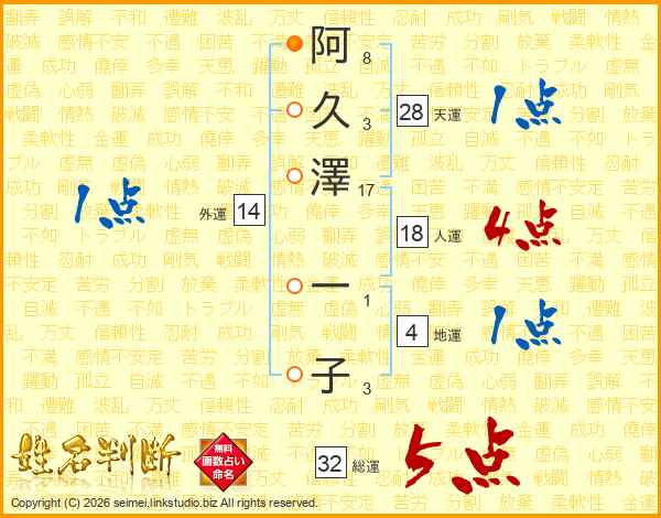 阿久澤一子さんの総運は32画の5点!