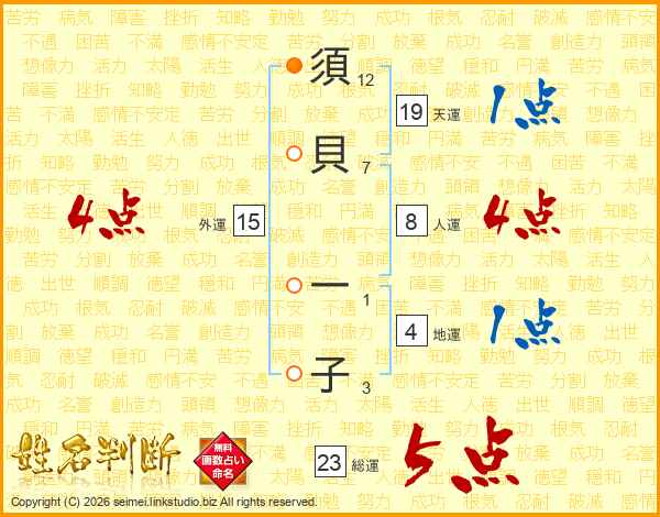 須(12画)貝(7画) 一(1画)子(3画)