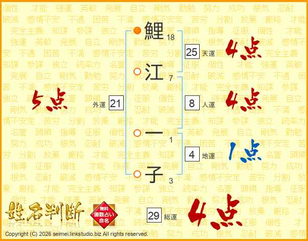 鯉江一子さんの天運は25画の4点!