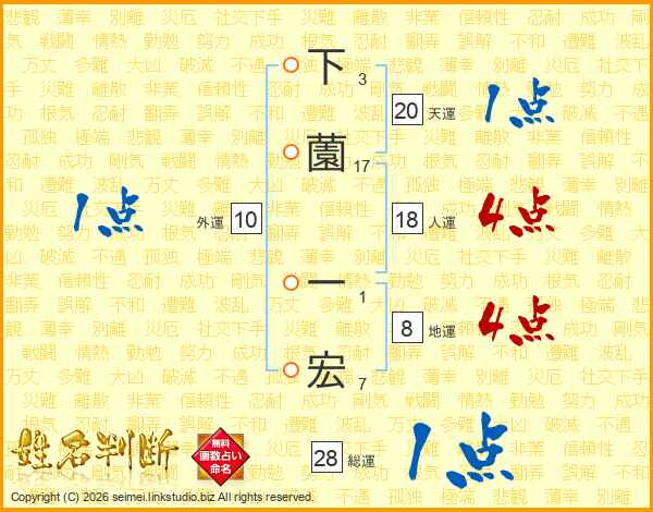下薗一宏さんの総運は28画の1点!